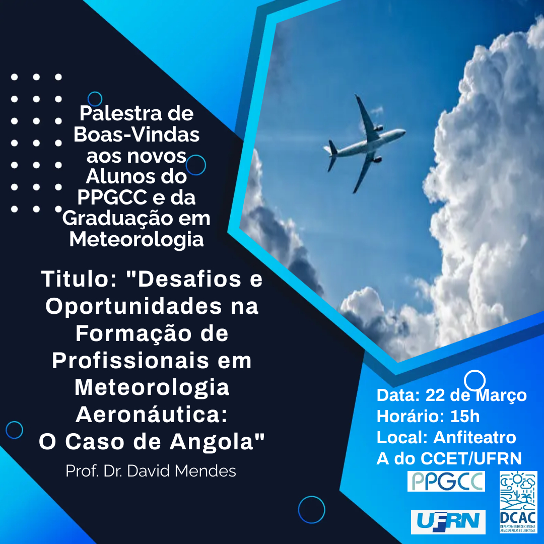 A palestra será sobre Meteorologia Aeronáutica, proferida pelo prof. David Mendes (VEJAM O INFORMATIVO ANEXO).